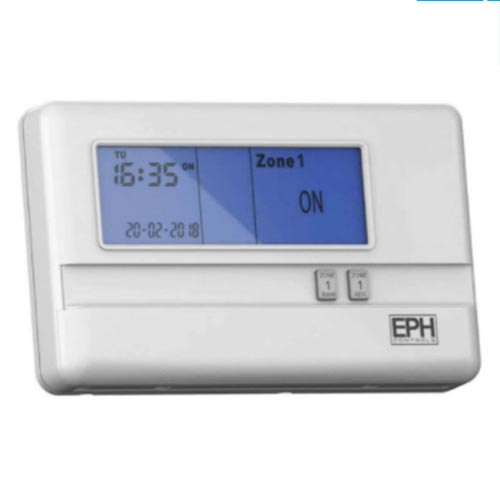 3 Channel Digital Programmer EPH R37. This 3 Zone programmer is designed to provide ON/OFF control for one hot water and two heating zones, with the value added application of in-built frost protection.